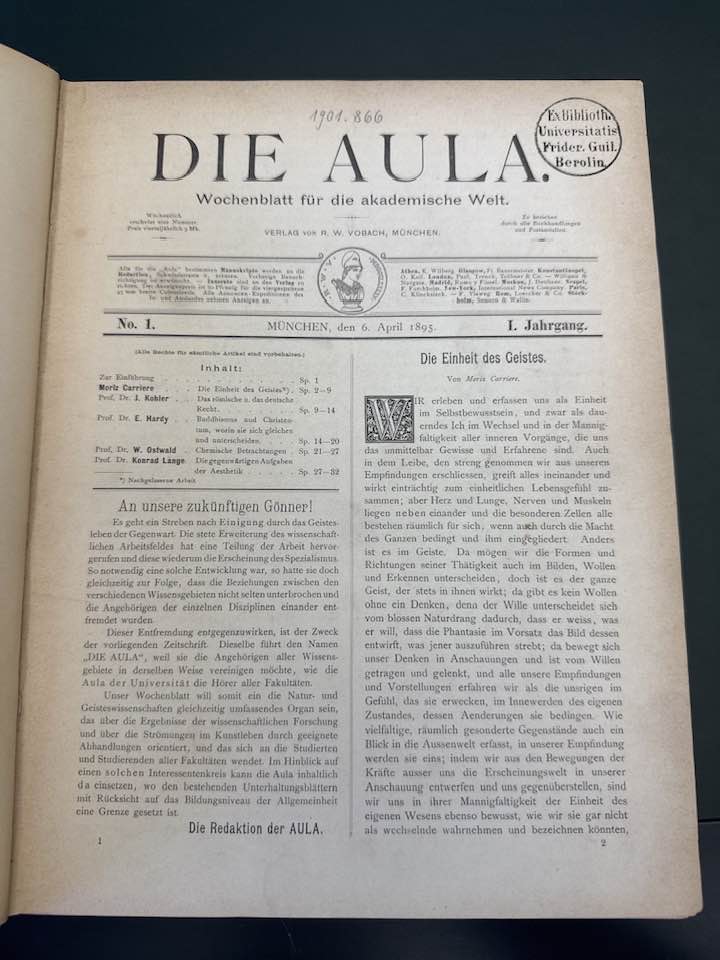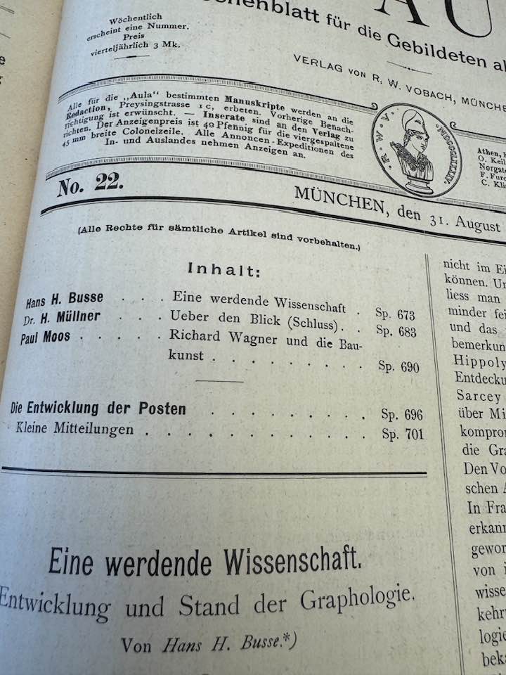 1895: Erstes Erscheinen der Zeitschrift „Aula“ – Beginn der aktiven Verlagstätigkeit unter Willi Vobach.
